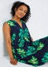 Roman Petite Navy Petite Tropical Print Smock Dress