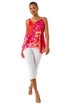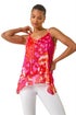Abstract Layered Cami Top from Roman. This stylish double layer cami showcases an eye catching all over abstract print, designed to add a pop of colour to your wardrobe. Featuring a flattering V-neckline, this sleeveless top offers a relaxed yet chic fit. The lightweight fabric makes it perfect for warm weather, and it pairs beautifully with shorts and sandals, creating an effortlessly cool, comfortable look for your casual outings.