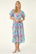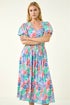 Abstract Print Button Midi Dress from Roman. Make a statement this season in this stunning abstract print midi dress. Featuring short balloon sleeves and a flattering v-neckline, this dress is detailed with unique front buttons. Designed with an elasticated waist to ensure a perfect fit, this comfortable woven fabric dress falls elegantly at midi length, complete with practical side pockets. Style with a denim jacket for the perfect Spring Summer look!