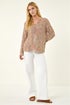 Roman Pink Crochet Detail Hooded Knit Jumper