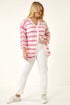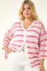 Roman Pink Curve Stripe Crochet Knit Cardigan