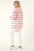 Curve Stripe Crochet Knit Cardigan from Roman. Add a touch of chic to your wardrobe with this classic Curve stripe knit cardigan. Featuring a stripe contrast crochet and cosy 3/4 sleeves, this stylish piece finishes at the hip and has a front button detail. Completed with a classic v-neckline, this cardigan is perfect to layer over your favourite shirt and jeggings for a casual yet sophisticated look!