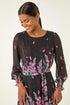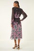 Floral Border Print Belted Midi Dress from Roman. Effortlessly transition from day to night in this stunning floral border midi dress. The dress features a charming floral print border, elegant shirred cuffs, a waist-cinching self-tie belt, and a classic round neck. Perfect for the Autumn/Winter season, this dress exudes sophistication and style. Complete the look with tights and heeled boots for a chic ensemble that will take you from desk to dinner seamlessly.