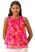 Floral Double Layered Pleated Top from Roman. Floral lovers, rejoice! Embrace the beauty of Spring/Summer with this lovely double-layered pleated top. Covered in a charming floral print, this sleeveless piece features elegant pleating at the neckline and a flattering double-layer hem. Designed with a classic round neck, this top is perfect for adding a touch of femininity to your outfit. Pair it with jeans and sandals for an effortlessly chic and casual look that's perfect for sunny days out!