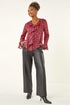 Roman Pink Floral Frill Metallic Blouse