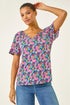 Roman Pink Floral Gathered V-Neck Stretch Top
