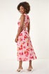 Roman Pink Floral Pleated Chiffon Midi Dress