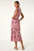 Roman Pink Floral Print Stretch Midi Dress