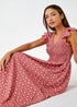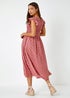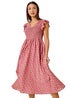 Roman Pink Frill Sleeve Spot Shirred Midi Dress