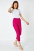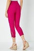 Lace Insert Elastic Waist Crop Trousers from Roman. Give your everyday looks a feminine flair. Finished with a pretty lace insert at the hem, these slim fit trousers made with soft stretch fabric are perfect for both work and special occasions. Style with a blouse and heels for a look that will take you from the office to the bar with ease.