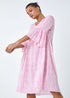 Learn moreLeaf Print Shimmer Smock Dress from Roman. This leaf print smock dress screams Summer. Detailed with a touch of shimmer in subtle metallic threads, this knee-length piece features a v-neckline and delicate frill at the waist. Adding to its charm are the 3/4 length frill sleeves, perfect for those sunny Spring days. Effortlessly chic, this day dress captures the carefree vibe of the season, simply pair with sandals and a denim jacket for your next trip to the beach!