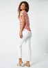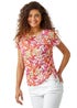 Leaf Print Side Tie Stretch Top from Roman. Add some on trend colours to your casual collection with this leaf print side tie top. Cut from a stretch jersey fabric, this piece is adorned in a colourful burnout leaf print. It features a modest round neckline and short, batwing sleeves. The bodice features two side ties complete the flattering ruching. Pair with cropped jeggings and sandals for a fuss free, on trend Summer look!