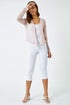 Lightweight Knitted Shrug from Roman. Lightweight layers are essential during the warmer months and this knitted shrug is perfect for just that. Cut from a light, knitted fabric this piece is designed in a unique, drop needle style, creating texture and interest throughout the piece. It features a luxurious edge to edge, draped open front and full length sleeves. Its finished with intricate pointelle detail at the hem. Throw over casual Summer outfits or layer up with your occasion dresses for an added layer!
