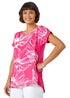 Roman Pink Linear Floral Print Stretch T-Shirt