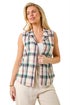 Petite Check Print Button Blouse from Roman. Set your style game strong this season with this trendy Petite check print blouse. Featuring a shirt style collar with a front button detail in a sleeveless design, cut from a cotton woven fabric for comfortable wear. Complete with front patch pockets, this blouse is finished in a shirt shape adorned with a classic check print. Style with a jacket and trousers for a casual but polished look!