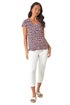 • Roman Pink Petite Floral Print Crinkle V Neck Top