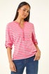 Roman Pink Petite Stripe V-Neck Button Top