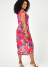 Roman Pink Petite Tropical Print Ruched Wrap Dress