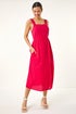 Learn moreSeersucker Button Midi Sundress from Roman. Get ready for sunny days in this charming seersucker sundress. This light and breezy dress is defined by its flattering fit and flare shape, with a cute square neck, button detail, and adjustable straps for a comfortable fit. Perfect for picnics or beach strolls, style it with sandals and a denim jacket for a relaxed and chic Spring Summer look!
