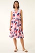 Spot Trim Smock Dress from Roman. Get ready for the warmer days in style with this spot print trim detail smock dress. The dress features a flattering V-neck and sleeveless design, perfect for those sunny days out. Adorned with cute button detailing and falling at a knee length, this dress is a must-have for your Spring/Summer wardrobe. Complete your look with sandals and a denim jacket for a laid-back yet chic ensemble!