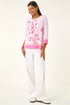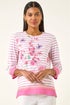 Stripe Floral Print Stretch Top from Roman. Get ready to bloom in style this Spring Summer with this floral print top. Crafted from a smooth cotton stretch fabric, this top features a classic round neckline and 3/4 sleeves for a versatile look. The bold floral stripe print adds a pop of colour and is designed in a flattering tunic shape. Pair with a denim jacket and jeggings for a chic outfit!