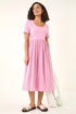 Roman Pink Textured Stripe Midi Dress