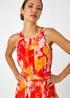 Roman Pink Tropical Print Halterneck Maxi Dress