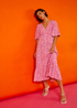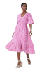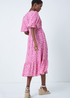 Roman Pink Zig Zag Print Tiered Hem Midi Dress