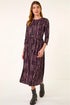 Abstract Print Stretch Midi Dress from Roman. Dress to impress this Autumn Winter with this striking abstract print midi dress. The classic round neckline and 3/4 sleeves will keep you cosy while the comfortable stretch fabric ensures all-day comfort. The eye-catching abstract print adds a touch of flair, finishing in a midi length with an elasticated waist for a flattering fit. Pair with a denim jacket and ankle boots for a stunning fall look!