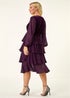 Roman Plum Petite Velvet Tiered Midi Stretch Dress