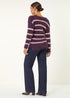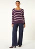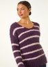 Stripe Fluffy Knit Jumper from Roman. Snuggle up and stay stylish this Autumn/Winter in our fluffy stripe knit! Embrace the cold weather in this cosy jumper featuring a classic V-neckline, long sleeves, and a luxuriously soft hand touch. The modern stripe design adds a chic touch to this comfy essential. Pair with your favourite jeans and ankle boots for a relaxed yet fashionable look!
