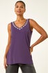 Roman Purple Embellished V-Neck Stretch Vest Top
