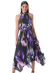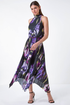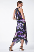 Roman Purple Floral Halter Neck Hanky Hem Midi Dress