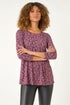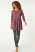 Leaf Print Gathered Tunic Top from Roman. Embrace the Autumnal vibes in this leaf print tunic, perfect for adding a touch of nature to your wardrobe. Crafted from a soft, stretchy jersey fabric, this tunic features a round neckline and long sleeves for a cosy feel. The gathered detail at the waist creates a flattering silhouette, finishing at a low hip length. Pair with your favourite jeans and boots for a stylish and comfortable seasonal look!