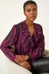 Roman Purple Linear Print V-Neck Ruffle Front Top