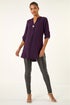 Longline Buttoned Notch Neck Top from Roman. Elevate your Autumn/Winter wardrobe with this chic longline top featuring a modern notch neck and subtle placket detail. The sophisticated v-neck and elegant 3/4 tab sleeves with buttons create a stylish look. This woven top is perfect for layering or wearing alone. Pair with jeggings and ankle boots for a trendy ensemble that will take you from day to night effortlessly!