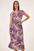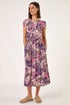 Roman Purple Paisley Print Short Sleeve Midi Dress