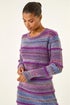 Stripe Knit Jumper Dress from Roman. Cosy up in style this Autumn/Winter with this chic stripe knitted short jumper dress. The round neckline and long sleeves provide a classic touch, while the flattering short length adds a modern twist. Perfect for chilly days, pair it with tights and ankle boots for a comfy yet stylish ensemble that will keep you warm and on-trend all season long.