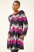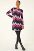 Zig Zag Side Button Dress from Roman. Get ready to make a stylish statement with this chic zig-zag button dress. Featuring a captivating zig-zag print and elegant side button detailing, this dress is perfect for the Autumn/ Winter season. With long sleeves, a classic round neck, and a flattering knee length, this dress is a versatile addition to your wardrobe. Pair it with tights and ankle boots for a trendy and fashionable look that will take you from day to night effortlessly.