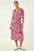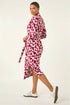 Abstract Geometric Shirt Dress from Roman. Get ready to make a statement in this abstract geo print shirt midi dress. Featuring a striking pattern and button detail, this dress is the perfect blend of style and comfort for the Spring/Summer season. Complete with a chic collar, waist belt, and crafted in a flattering fit and flare shape, this dress ensures a stylish silhouette. Pair with ankle boots and a denim jacket for a trendy look that's perfect for any occasion!