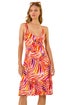 Abstract Print V-Neck Frill Dress from Roman. Unleash your style this Spring Summer with this vibrant abstract frill dress. Featuring a trendy v-neckline and sleeveless style, this dress is cut from a smooth stretch fabric adorned with a striking abstract print. The frill hem and gathered bust detail add a fun touch. Pair it with a denim jacket and wedged heels - perfect for those warmer days ahead!