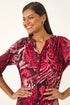 Animal Puff Print Stretch Shirt from Roman. Look effortlessly stylish in this animal print shirt with a trendy notch v-neckline and unique shoulder pleat detail. The 3/4 tabbed sleeves add a touch of charm to this feminine piece, cut from a smooth stretch jersey fabric. This is a perfect choice to pair with jeggings and ankle boots to complete your outfit that will turn heads wherever you go!