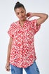 Aztec Print V-Neck Pleat Detail Top from Roman. Embrace the carefree vibes of Summer with our stunning aztec pleat front top. Featuring a colourful ikat print, this woven top is perfect for adding a pop of trendiness to your warm-weather wardrobe. The short sleeves and flattering v-neckline offer a relaxed and breathable feel, while the pleated design at the front adds a touch of elegance, ensuring a flattering fit. Pair it with cargo trousers and sandals for a chic and effortless seasonal style.