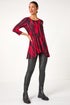 Roman Red Brush Print Hanky Hem Stretch Tunic Top