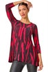 Brush Print Hanky Hem Stretch Tunic Top from Roman. Add an artistic touch to your Autumn and Winter wardrobe with this playful brush print tunic top. Featuring a modest neckline, this tunic boasts elegant 3/4 length sleeves adorned in linear brushstrokes for an artistic flair. The feminine hanky hem finish adds a stylish touch to this comfortable jersey stretchy plisse fabric top, perfect for the season. Dominate the cold in style by pairing it with jeggings and boots for a casual day out!