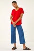 Roman Red Cold Shoulder Button Top