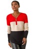 Colour Block Zip Front Knit Jumper from Roman. Stay cosy and stylish this Autumn Winter in our trendy stripe knit jumper. This pullover features a trendy 3-colour block design with a convenient zip front detail for easy layering. The long sleeves keep you warm while the curved hemline adds a touch of interest to the look. Pair with your favourite jeans and ankle boots for an effortless outfit.