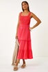 Crochet Detail Cotton Blend Maxi Dress from Roman. Look lovely in lace this Summer with our brand new strappy maxi dress! Plain in colour but not in design, this staple style has crochet overlay bodice with a flowing woven skirt. The boho tiered design adds to the elegant fit and flare shape, trimmed with pop pom bobble lace. The flattering wide straps ensure the perfect fit with a stretch shirred back for comfort whilst the square neckline provides a flattering finish. Pair this dress with a denim jacket and sandals for effortless Spring days!