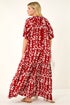 Curve Printed Woven Maxi Dress from Roman. Add a touch of tropical vibes to your Summer wardrobe with this chic woven dress. Featuring a beautiful all-over print, an elasticated round neckline ensures comfort and style. The three-quarter sleeves and tie detail off the neckline add a fun twist to this maxi length dress. Perfect for casual outings, pair this dress with sandals and a denim jacket for an effortless Summer look!