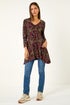 Learn moreDisty Circle Print V-Neck Tunic from Roman. Bring a touch of fun to your Winter wardrobe with this v-neck tunic. Featuring 3/4 sleeves and handy pockets, this below-hip length tunic is crafted from stretchy jersey fabric, ensuring both comfort and style. The all-over small ditsy circle print adds a playful touch to the overall look. Just pair with jeans and ankle boots for a casual yet chic ensemble!